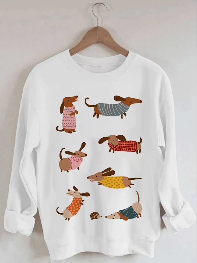 Women's Cute Dachshund Print Long Sleeve Round Neck Sweatshirt