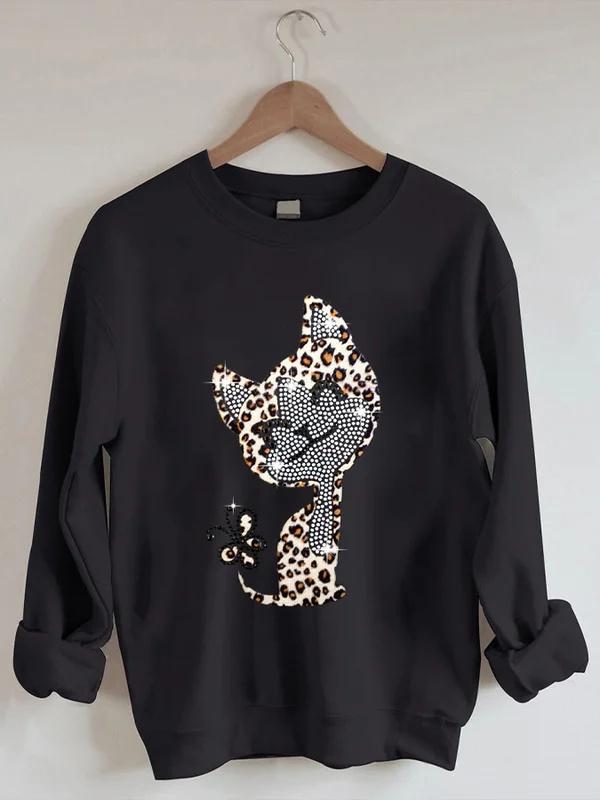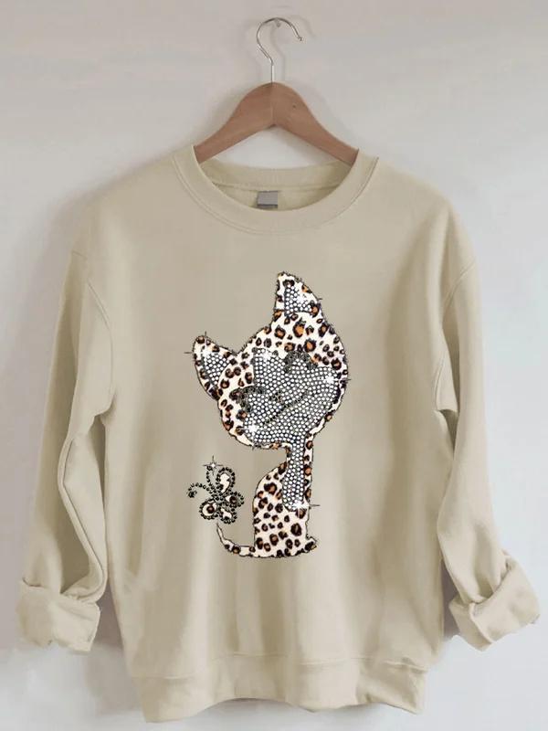 Women's Funny Bling Leopard Cat Print Casual Sweatshirt