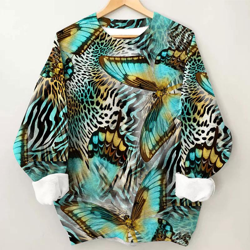 Women’s Butterfly leopard Printing Long Sleeve Round Neck Sweatshirt
