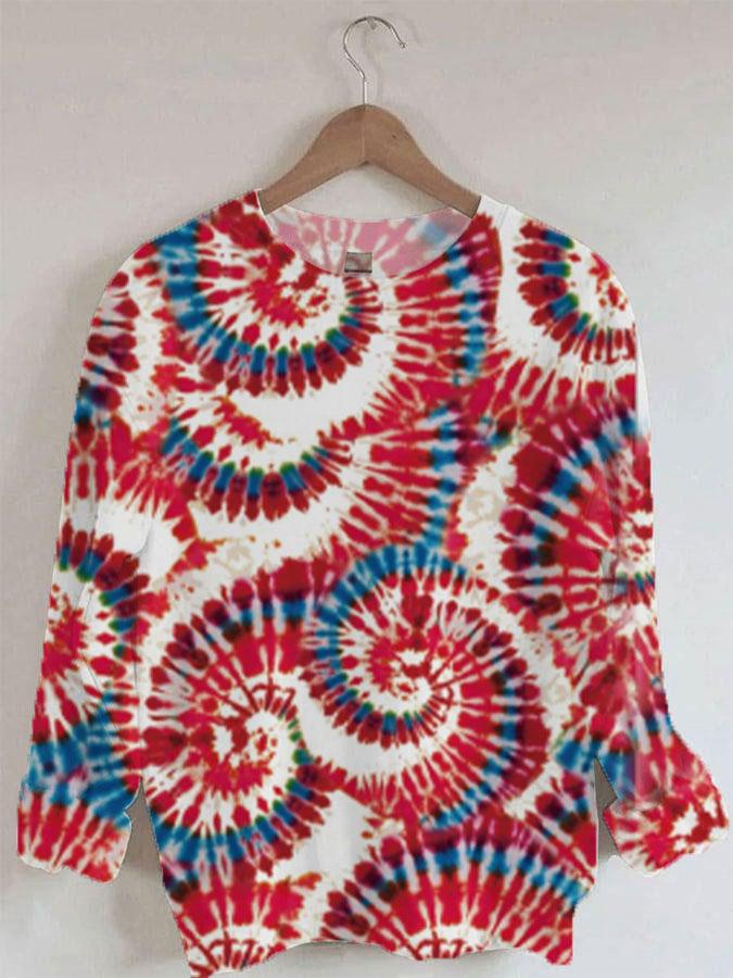 Women's Tie Dye Red And Blue Spiral Texture Print Sweatshirt