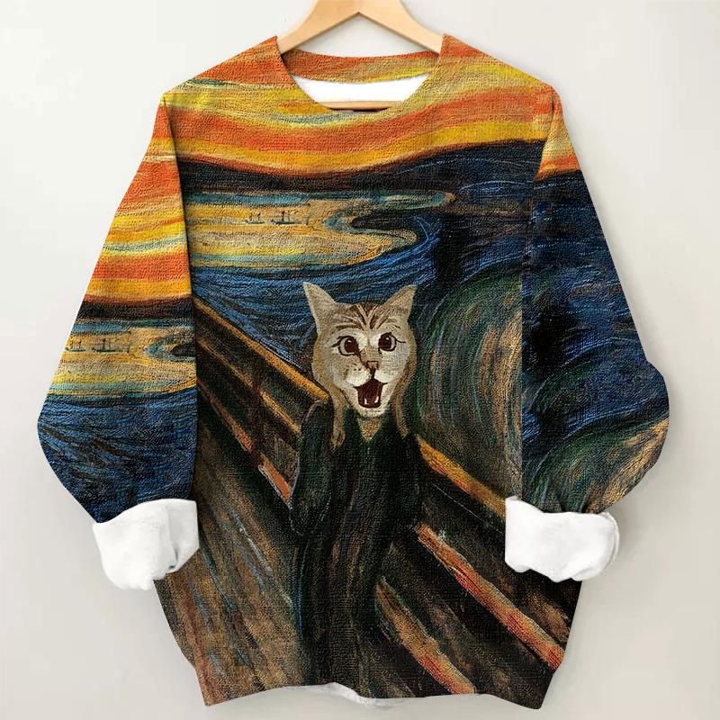 Women’s The Scream Printing Long Sleeve Round Neck Sweatshirt