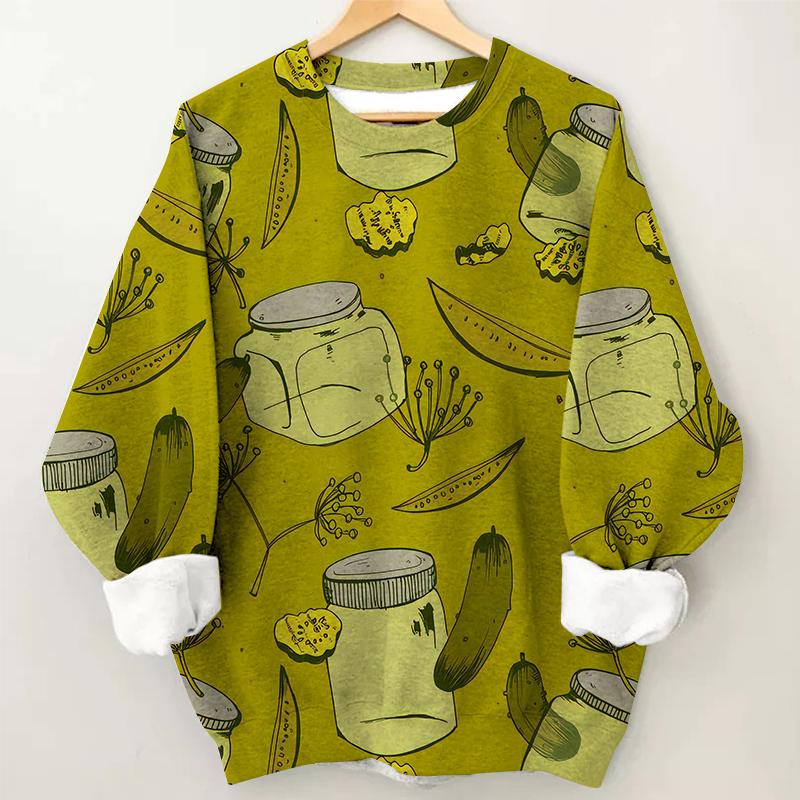 Women's Canned Pickles Print Long Sleeve Round Neck Sweatshirt