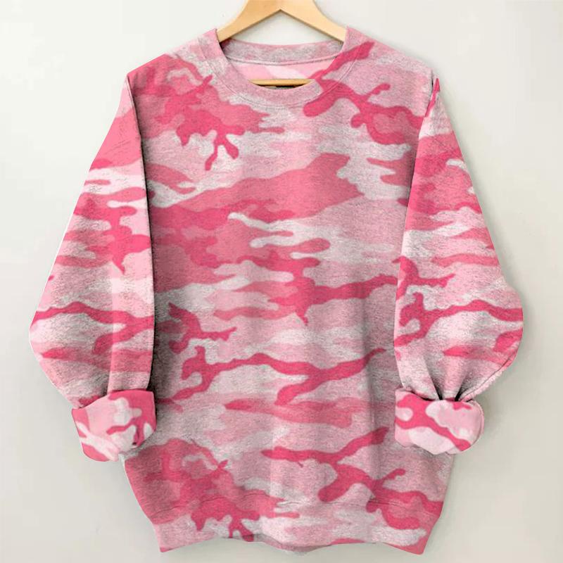 Women's Pink Camouflage Print Round Neck Sweatshirt