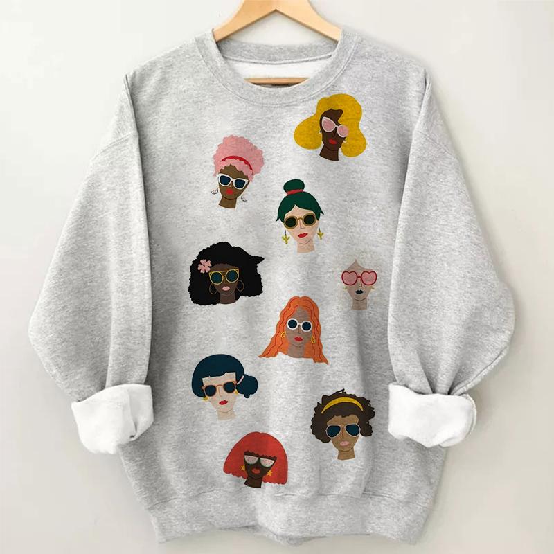 Women’s People Printing Long Sleeve Round Neck Sweatshirt