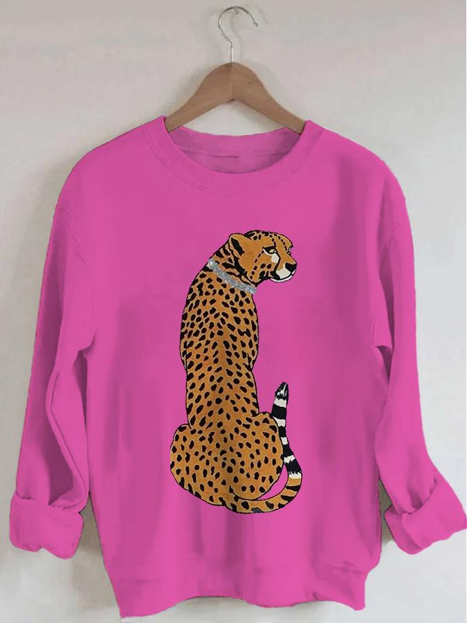 Women's Cheetah Print Long Sleeve Crew Neck Sweatshirt