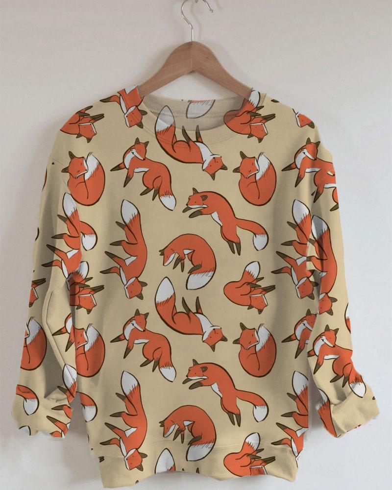 Women's Fox Print Round Neck Long Sleeve Sweatshirt