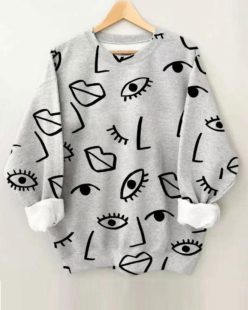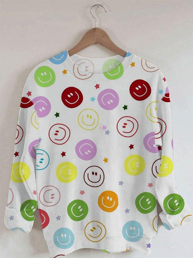 Women's Smiling Face Print Round Neck Long Sleeve Sweatshirt