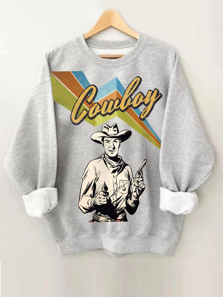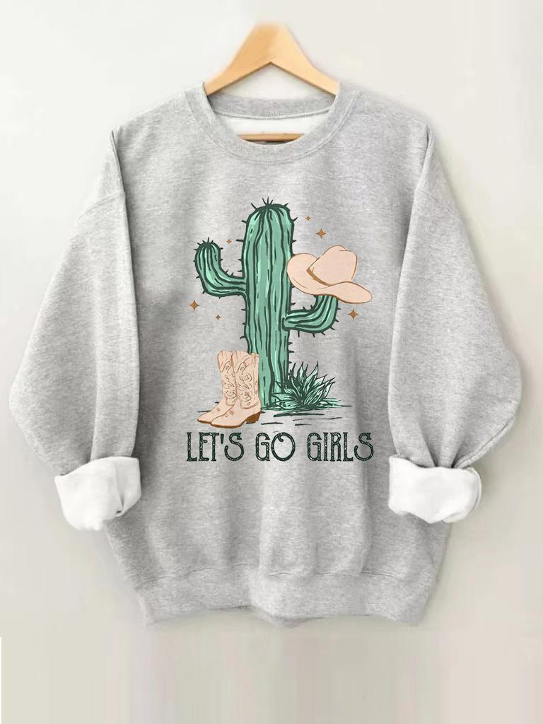 Women's Cactus Cowboy Hats And Boots Print Round Neck Sweatshirt