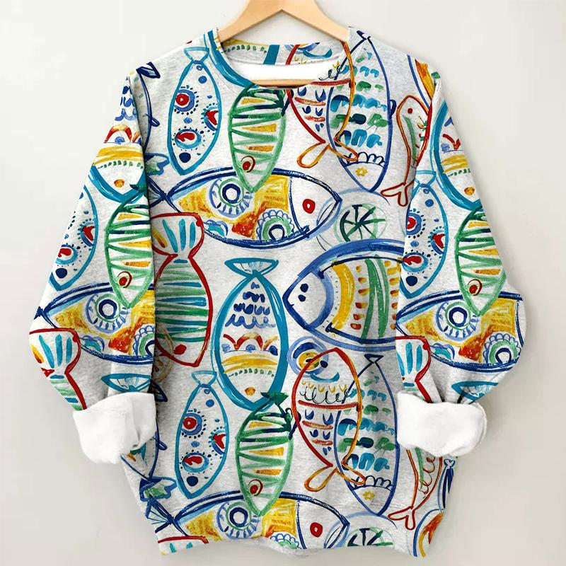 Women’s Art printing Print Long Sleeve Round Neck Sweatshirt